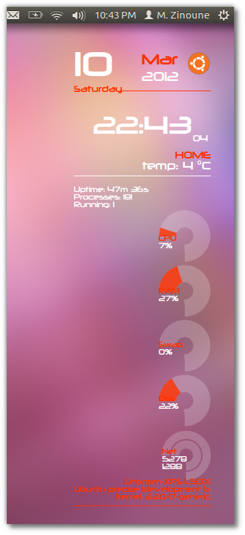 Conky-Lua next generation is a nice conky theme from the same author of Conky Lua. This theme is available for Debian, Fedora, LinuxMint, PCLinux, Opensue and Ubuntu. From my side i tested this conky theme in Ubuntu 12.04 LTS Precise Pangolin Beta1.